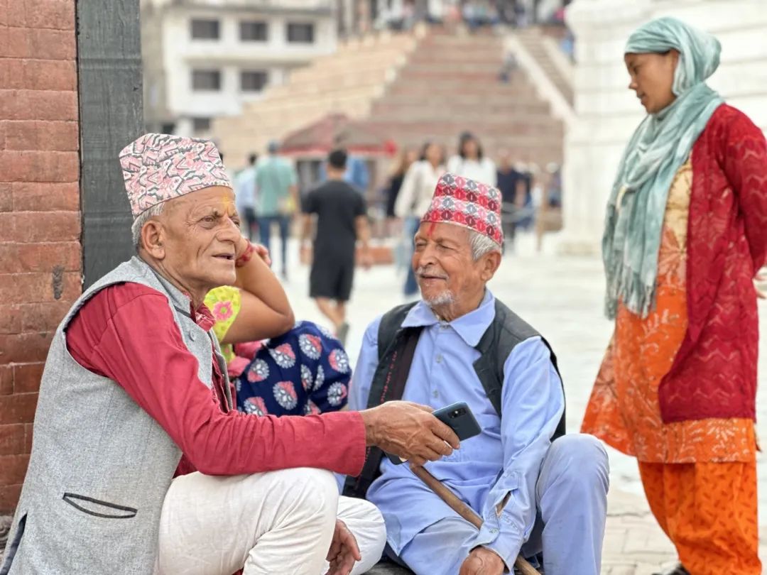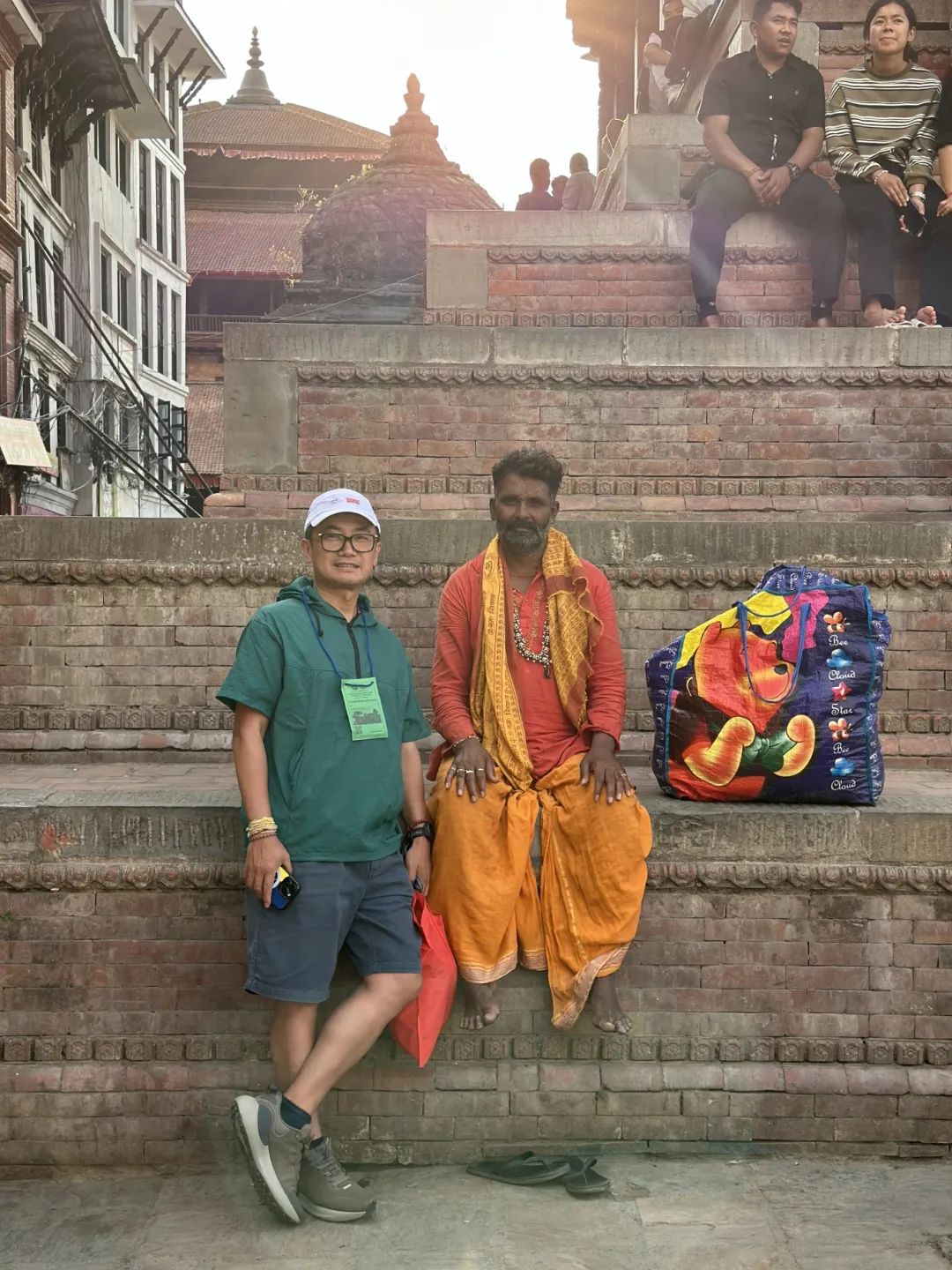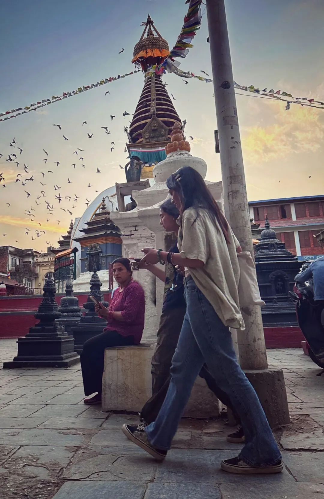多宗教的共存对加德满都人的性格产生了深远影响,他们既保留了佛教的宽容与慈悲,又继承了印度教的热情与包容。人们尊重彼此的不同信仰,在多样性中寻找共鸣,形成了乐观开朗、包容开放的性格特质。在这里,无论你是信徒还是游客,都能感受到一股平和与友善的氛围。我随意地坐在当地人的身边和他们合影,所有人都会很自然地凑近,不存在半点儿尴尬。